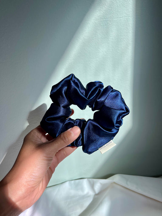 Navy satin scrunchie